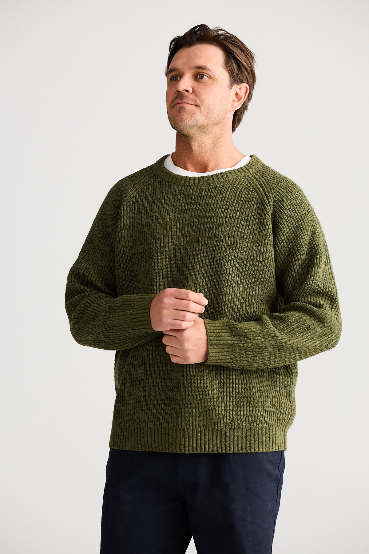 A chunky knit with a textured finish, designed for warmth, structure and easy layering through cooler weather.