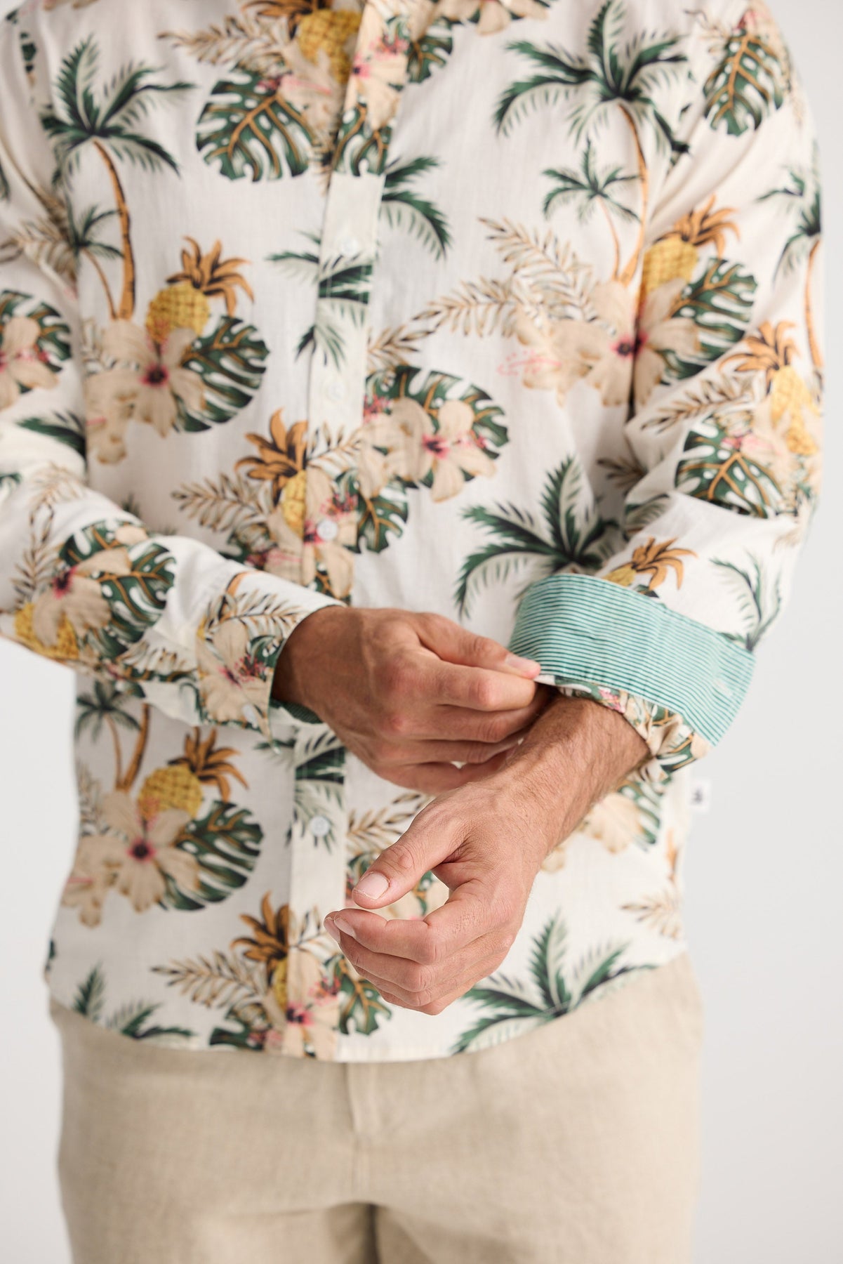 • Long sleeves with buttoned cuff